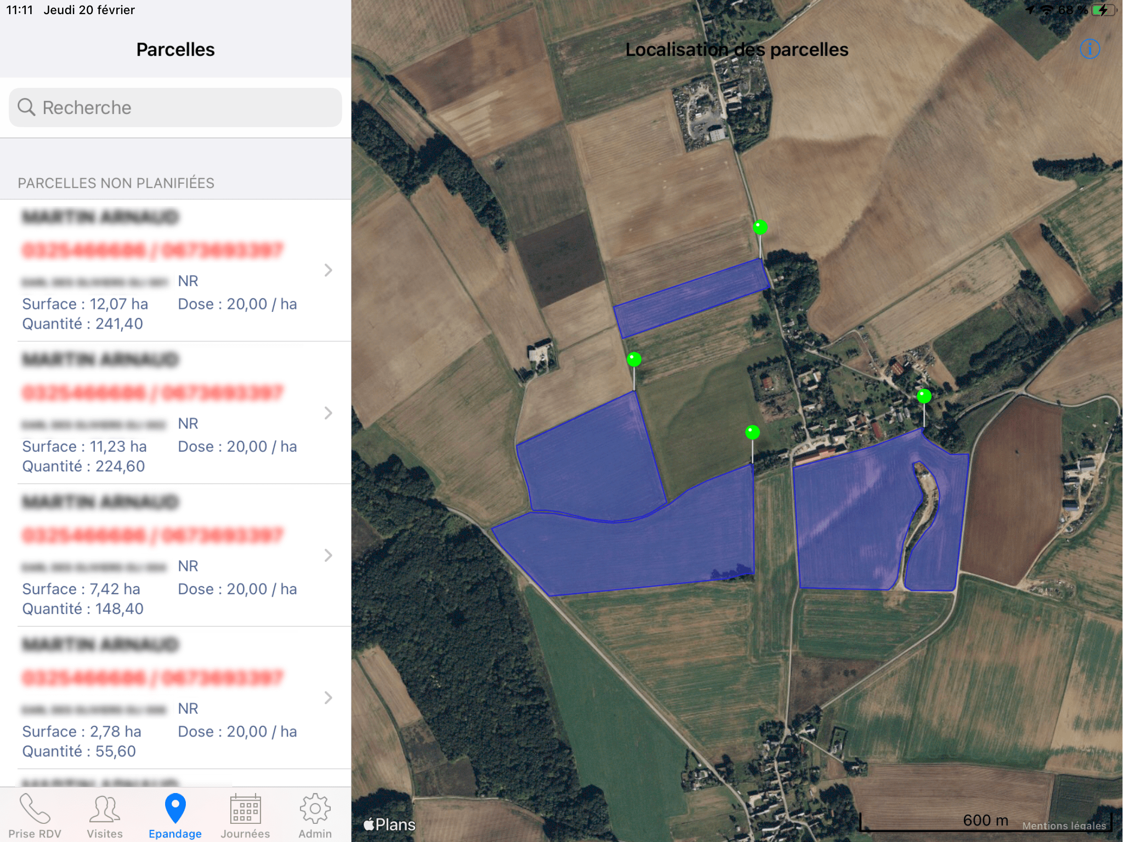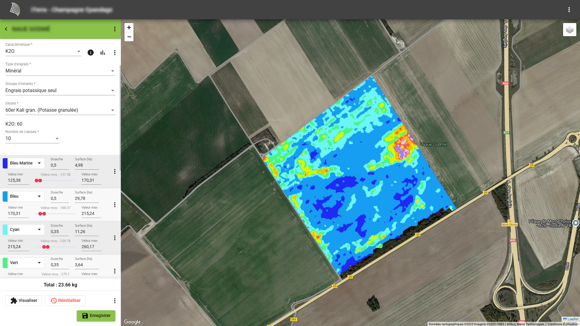 De nombreuses fonctionnalités de géolocalisation et de cartographie sont intégrées aux logiciels pour permettre l'optimisation et le suivi des opérations d'épandage ou de prélèvements in situ.